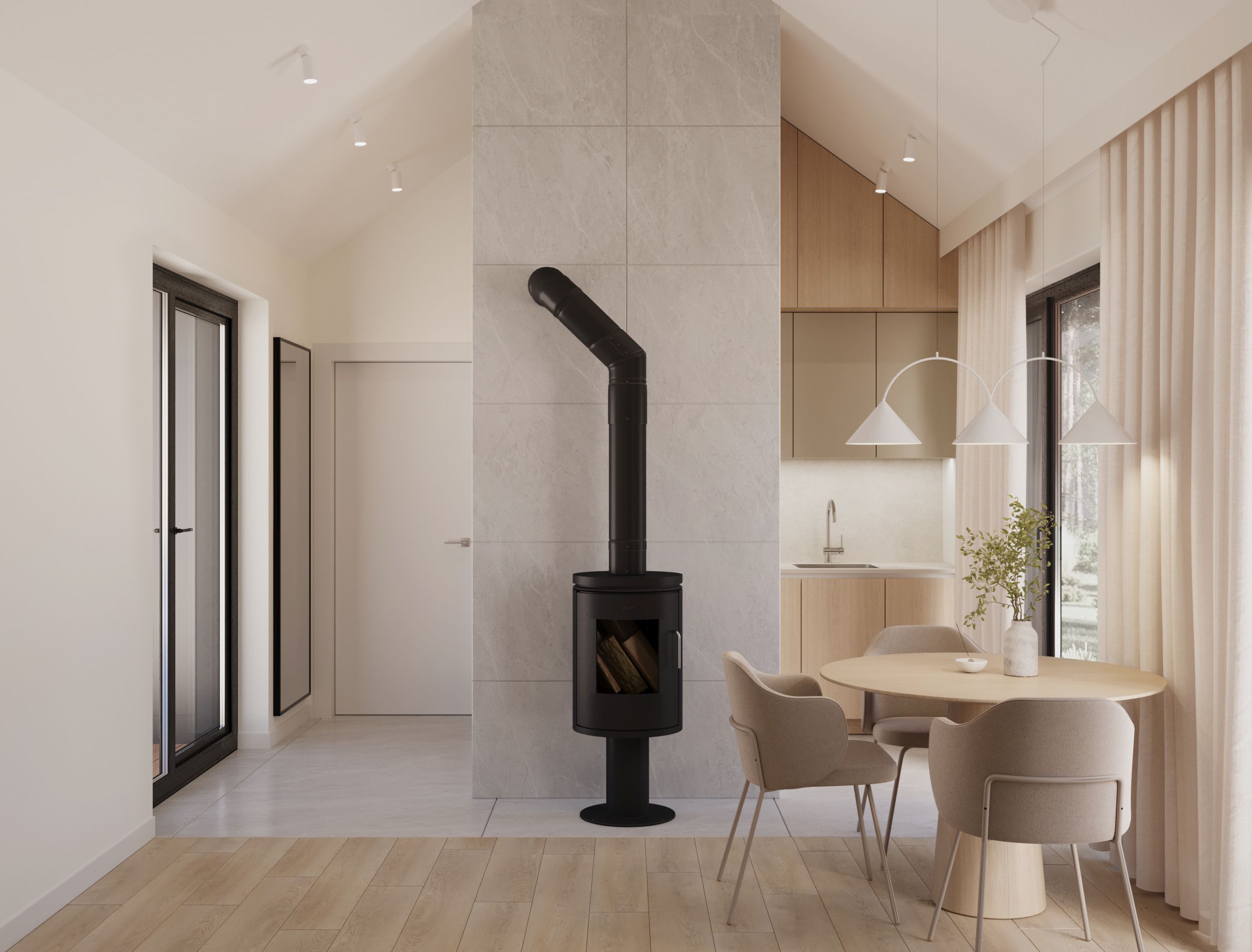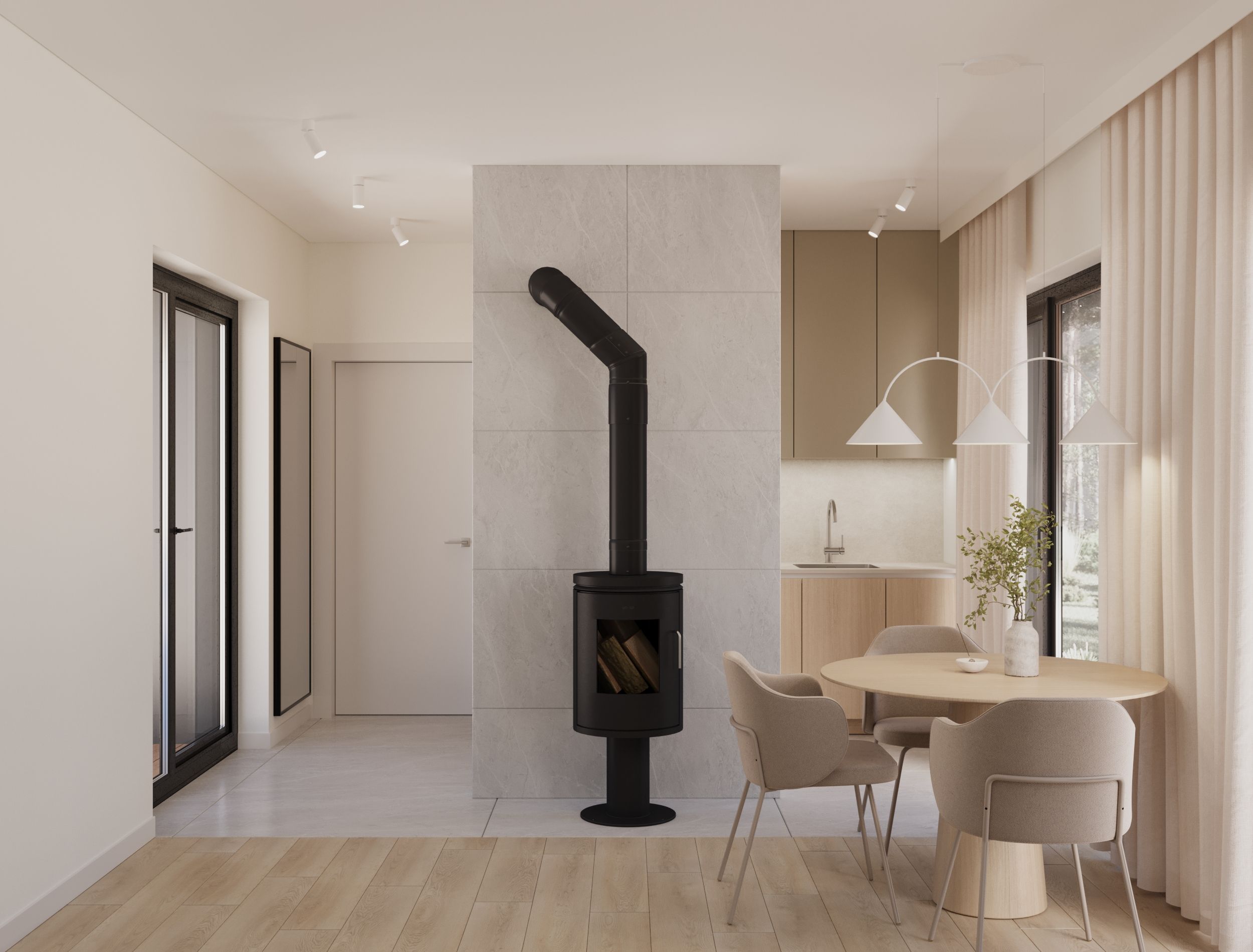 Homes are heated using air-to-water or air-to-air heat pumps with underfloor heating.