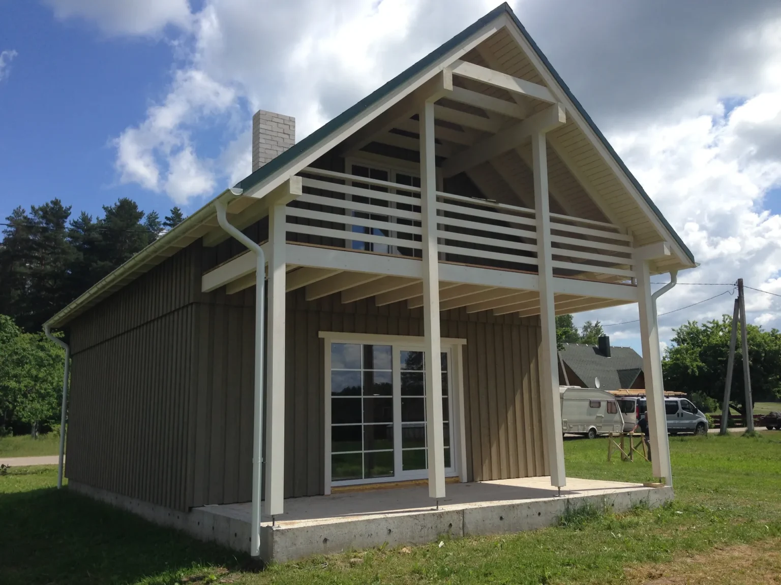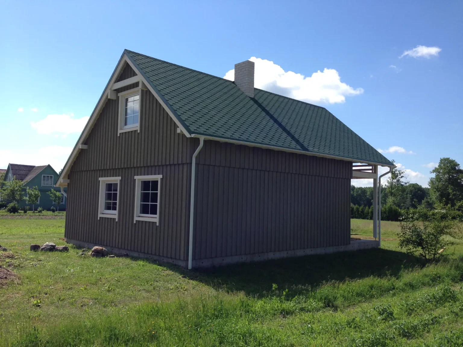 Kompaktiškas dviejų aukštų skydinis namas Meironyse, pritaikytas poilsiui ir gyvenimui gamtos apsuptyje.